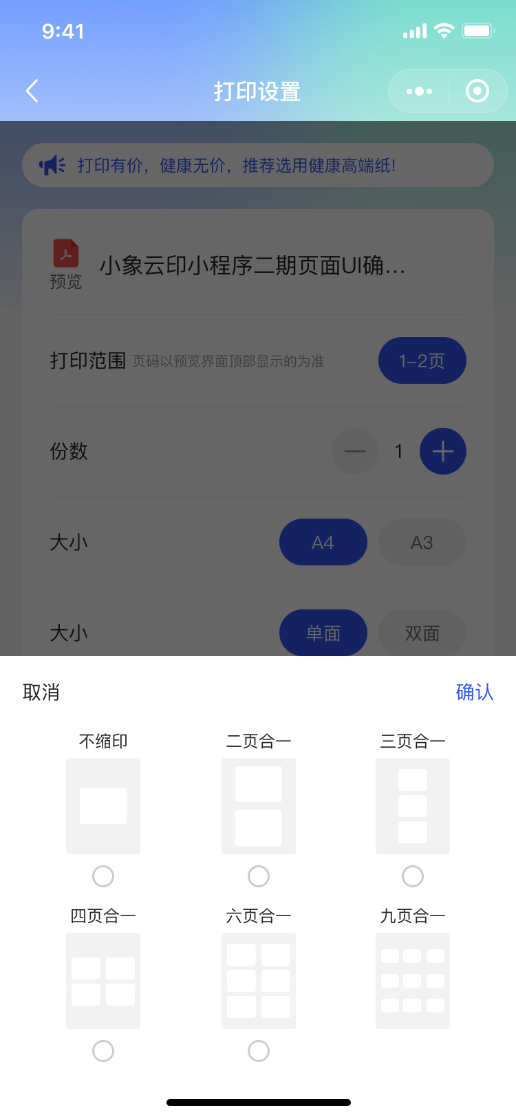 6. 用戶友好的界面設計:小象云印小程序界面簡潔直觀,操作便捷,即使是第一次使用的用戶,也能快速上手,輕松完成打印任務。