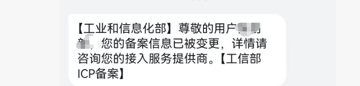 工信部審核結(jié)果出來(lái)之后,管理員的手機(jī)會(huì)有短信提示,比如:尊敬的用戶***,您的備案信息已被變更,詳情請(qǐng)咨詢您的接入服務(wù)提供商。這就表示你的ICP備案已經(jīng)成功了。反之,會(huì)有未通過(guò)的提示。通常未通過(guò)的原因,是域名的實(shí)名信息與企業(yè)的備案信息不一致,需要先更改域名的認(rèn)證信息,保持與主體一致,再重新提交。