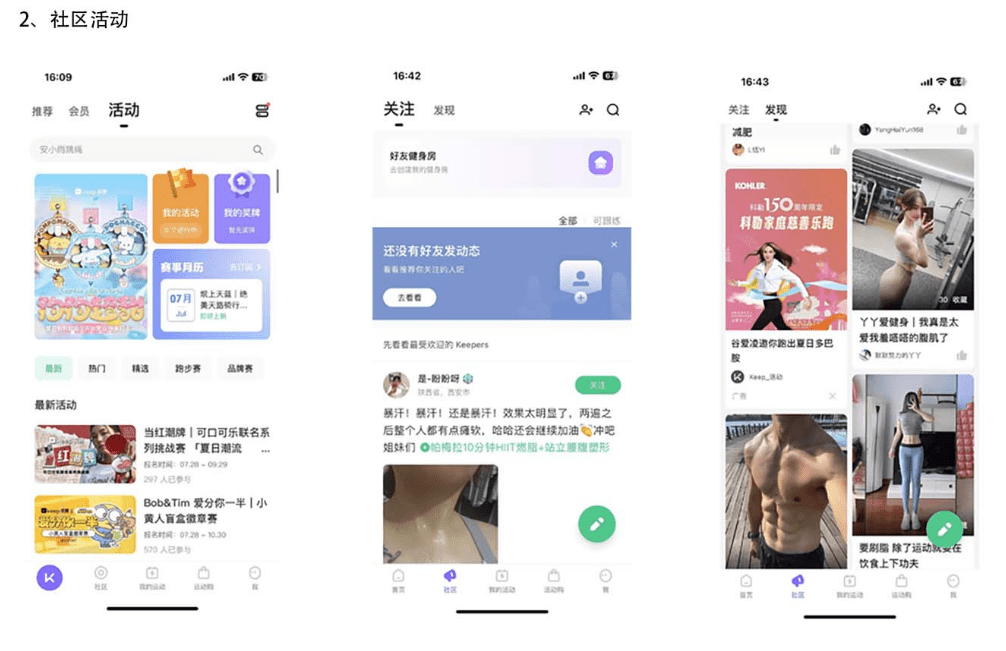 社區(qū)活動(dòng)-關(guān)注:用戶可以關(guān)注其他一些用戶動(dòng)態(tài),也可以自己發(fā)表一些動(dòng)態(tài),例如健康分享,飲食分享等。