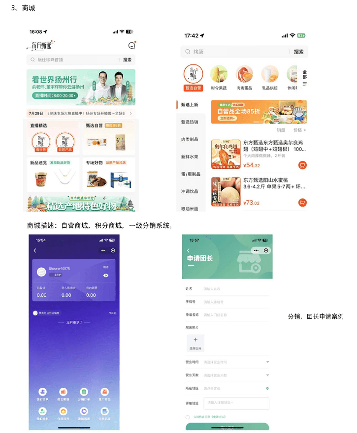 普通用戶: 注冊(cè)即為會(huì)員,會(huì)員分為L(zhǎng)V0-LV9等級(jí),相應(yīng)等級(jí)通過購買物品金額累計(jì)升級(jí)。 (設(shè)定相應(yīng)等級(jí)可以分享日常等,但無法使用健康端口)積分:積分通過簽到,購買物品返積分獲得。積分可用來進(jìn)行小游戲,積分商城物品兌換,積分抵用現(xiàn)金形式團(tuán)長(zhǎng):團(tuán)長(zhǎng)需申請(qǐng),填寫基本信息后提交通過后臺(tái)審核進(jìn)行。團(tuán)長(zhǎng)“發(fā)展下線”場(chǎng)景團(tuán)長(zhǎng)二維碼:團(tuán)長(zhǎng)進(jìn)入分銷中心模塊后,點(diǎn)擊發(fā)展下線功能按鈕,顯示專屬推廣二維碼,用戶掃碼后進(jìn)入小程序系統(tǒng)自動(dòng)識(shí)別若為新用戶則自動(dòng)綁定與該團(tuán)長(zhǎng)分銷關(guān)系分享商品:團(tuán)長(zhǎng)可分享商品鏈接或商品海報(bào)至微信好友,好友通過鏈接進(jìn)入小程序后,系統(tǒng)自動(dòng)識(shí)別若為新用戶則自動(dòng)綁定團(tuán)長(zhǎng)分銷關(guān)系