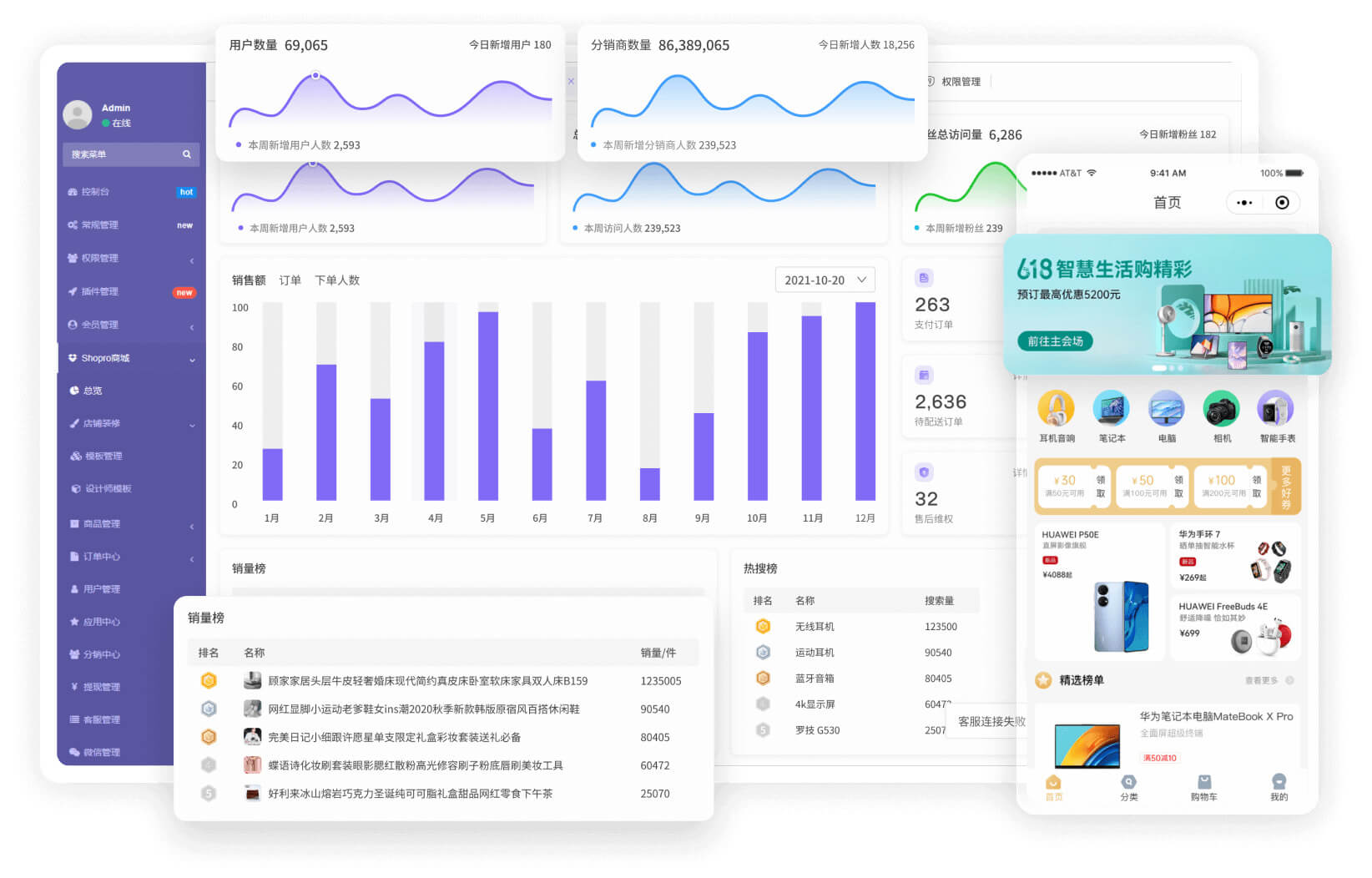 小火商城支持多角色分銷,商家可以設置不同的分銷等級和權益,激勵分銷員積極推廣。此外,商城還提供數(shù)據(jù)統(tǒng)計功能,商家可以通過數(shù)據(jù)可視化,了解用戶增長趨勢、分享活躍趨勢、訂單數(shù)據(jù)統(tǒng)計、銷量榜、熱搜榜等信息,為決策提供數(shù)據(jù)支持。