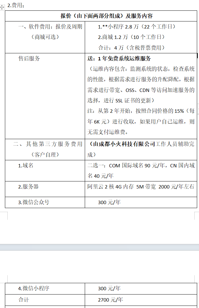 那么,如果我想定制開(kāi)發(fā)一個(gè)小程序,需要多少錢(qián)呢?可以參考成都小火科技公司(TEL:19113551853)的報(bào)價(jià)。下面是一個(gè)物聯(lián)網(wǎng)小程序,甲方想加入硬件設(shè)備,實(shí)現(xiàn)小程序的控制操作,也想通過(guò)商城來(lái)售賣(mài)附屬產(chǎn)品。針對(duì)甲方的實(shí)際情況,我們把物聯(lián)網(wǎng)和商城的功能分開(kāi)報(bào)價(jià)。小程序物聯(lián)網(wǎng)部分22個(gè)工作日,報(bào)價(jià)2.8萬(wàn)元。商城1.2萬(wàn)元,包含定制的功能。