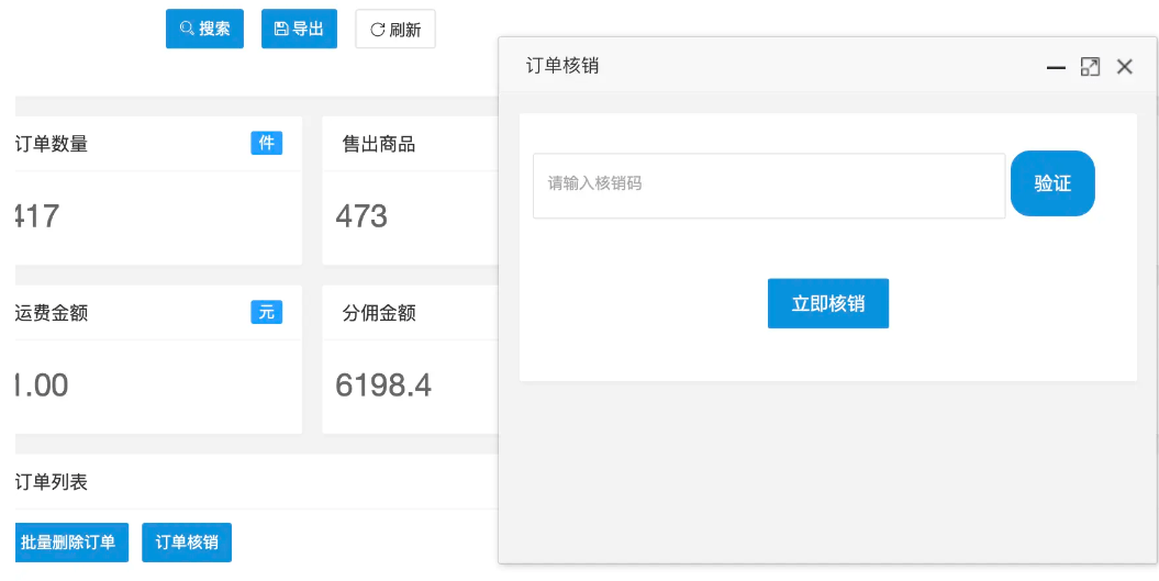 6.用戶可以在微信公眾號(hào)或支付寶服務(wù)窗口中使用核銷碼,進(jìn)行自提或郵寄送貨的核銷。
