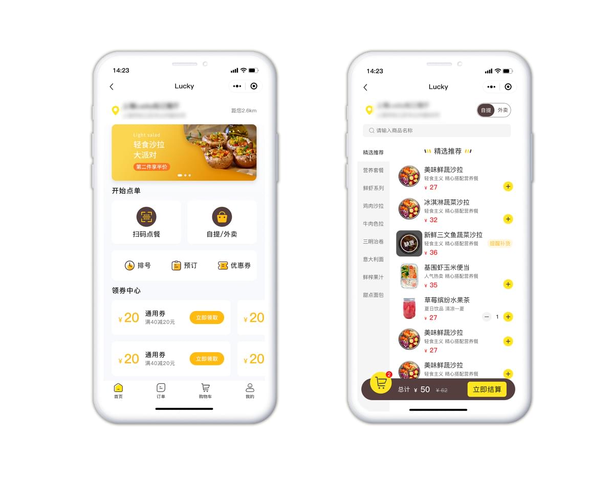 3. 線上點餐:用戶可以在小程序中選擇菜品并下單,選擇送餐或自取等方式,方便快捷。