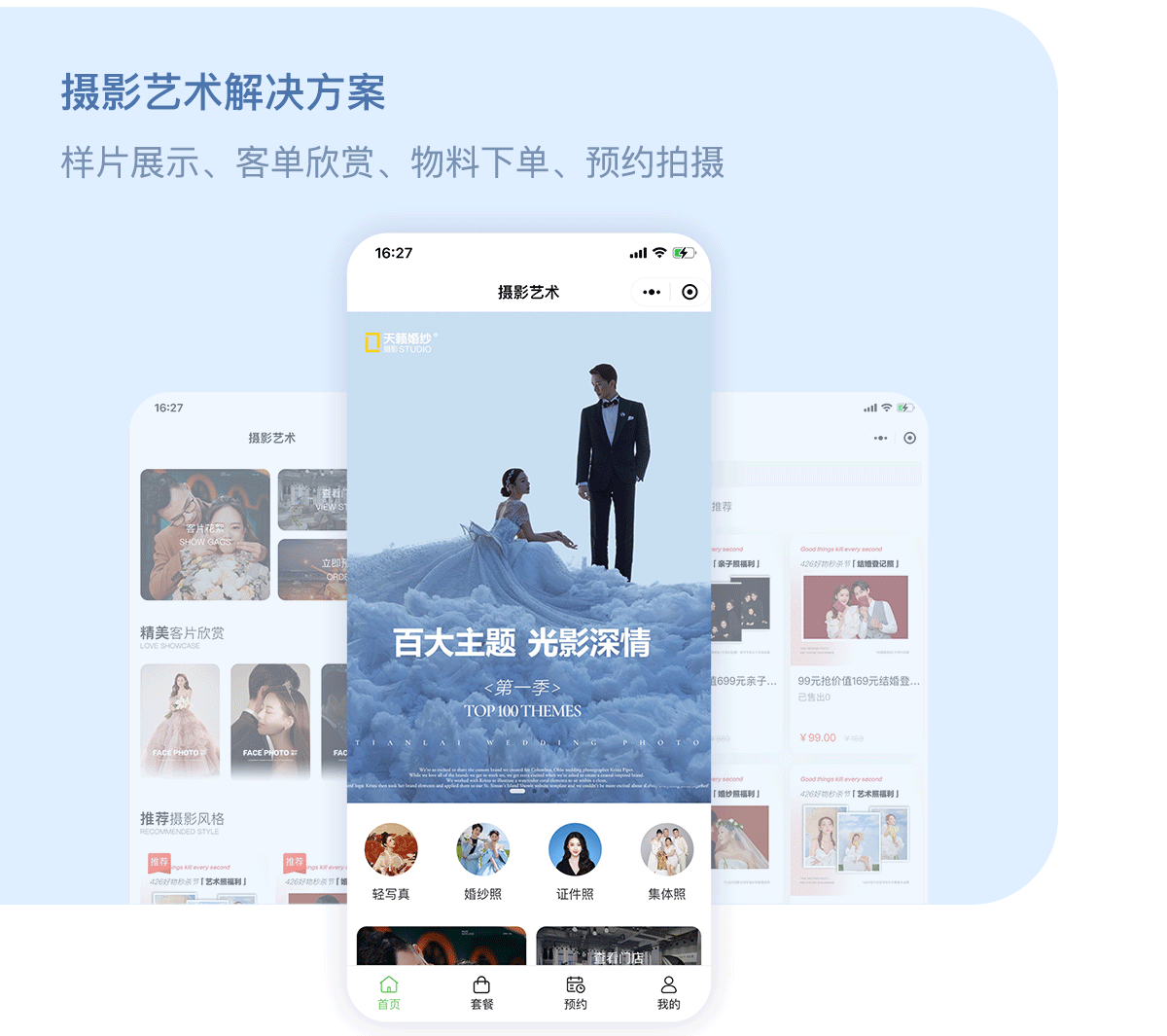 世界上有一種美好,叫做回憶。有一種讓回憶落腳的方式,叫做照片。從企鵝朋友圈的變化,大家可以看到,圖片仍然是人們記錄瞬間,回憶過去的主要方式。所以,攝影行業(yè),不管是現(xiàn)在,還是將來,都會有很好的發(fā)展。攝影行業(yè)的發(fā)展,帶動了攝影機構(gòu)、攝影工作室、獨立攝影師也在不斷地進行創(chuàng)新和發(fā)展。為了滿足消費者對于便捷、個性化的攝影服務的需求,小火科技非常看好攝影行業(yè),并且憑借自己技術(shù)專業(yè)上的優(yōu)勢,為攝影機構(gòu)和工作室量身打造了一款全能的攝影小程序。這款小程序不僅包含了輕寫真、婚紗照、證件照、集體照等多種欄目,還提供了在線預約、照片云打印等功能,為用戶提供了一站式的攝影服務體驗。