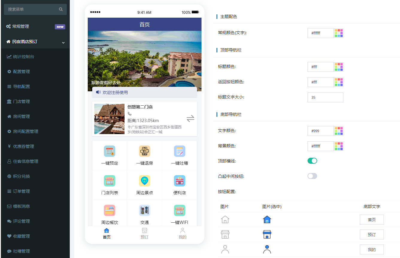 在旅游行業(yè)相關(guān)的軟件系統(tǒng)中,多門店民宿酒店預(yù)訂管理系統(tǒng)已經(jīng)成為酒店行業(yè)的標(biāo)配。下面介紹一款快速我們部署的專業(yè)民宿酒店預(yù)訂小程序,它集成了預(yù)訂、退房、WIFI連接、吐槽、周邊信息等功能,旨在為酒店業(yè)主提供一個全面、高效的預(yù)訂和管理解決方案。這些功能完全能滿足普通的酒店的需求,非常實用!
