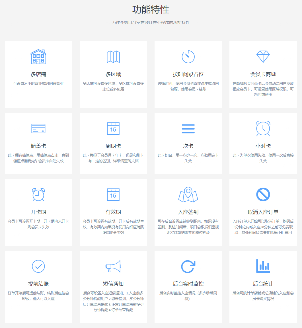 成都小火科技公司推薦一款自習(xí)室在線訂座小程序,這款小程序包含了多種功能,能夠滿足各種需求。同時(shí)該小程序注重用戶的體驗(yàn),在符合使用邏輯的基礎(chǔ)之上,進(jìn)行了很多細(xì)節(jié)功能的優(yōu)化。同時(shí),小火科技對(duì)平臺(tái)的數(shù)據(jù)進(jìn)行嚴(yán)格的加密,保證用戶的隱私。下面我們?cè)敿?xì)介紹這款在線預(yù)約自習(xí)室微信小程序的功能。