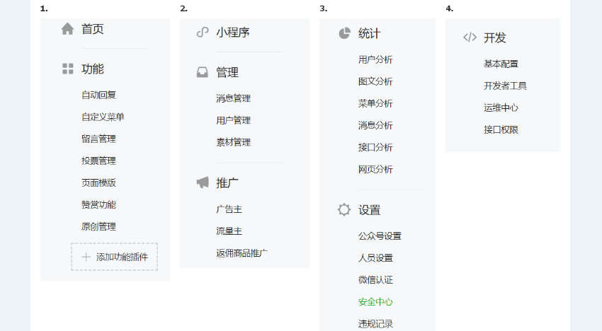 在微信公眾號(hào)的開(kāi)發(fā)流程中,首先需要完成的是公眾號(hào)的注冊(cè)。注冊(cè)過(guò)程要注意選擇好公眾號(hào)的類型,一定要選擇服務(wù)號(hào),而非訂閱號(hào)。接下來(lái),詳細(xì)瀏覽公眾號(hào)管理頁(yè)面的內(nèi)容,對(duì)公眾號(hào)運(yùn)營(yíng)的基礎(chǔ),包括對(duì)消息管理、素材管理、用戶管理等模塊的認(rèn)識(shí),是尋找開(kāi)發(fā)思路的重要步驟,不容小覷。