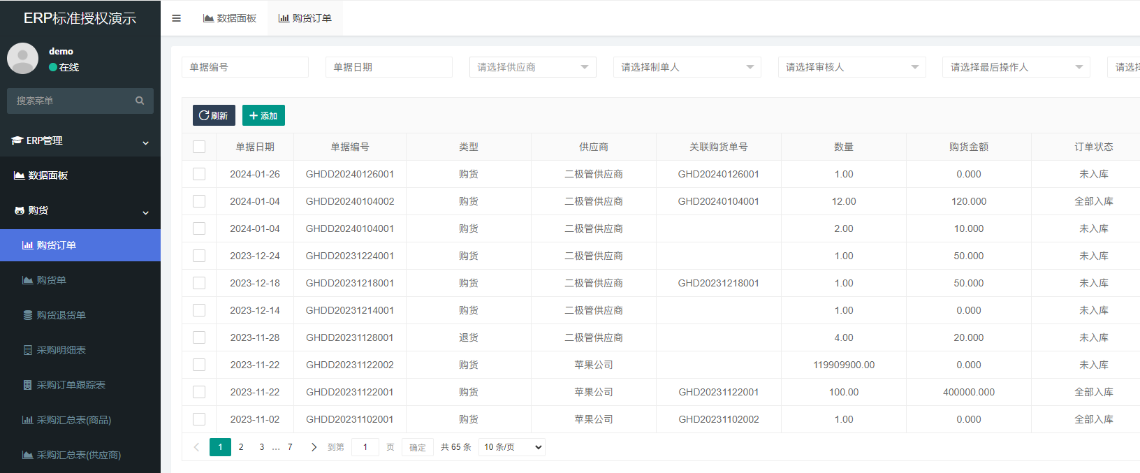 1. 管理采購訂單:輕松創(chuàng)建、修改、查詢采購訂單,實時掌握采購進度。
