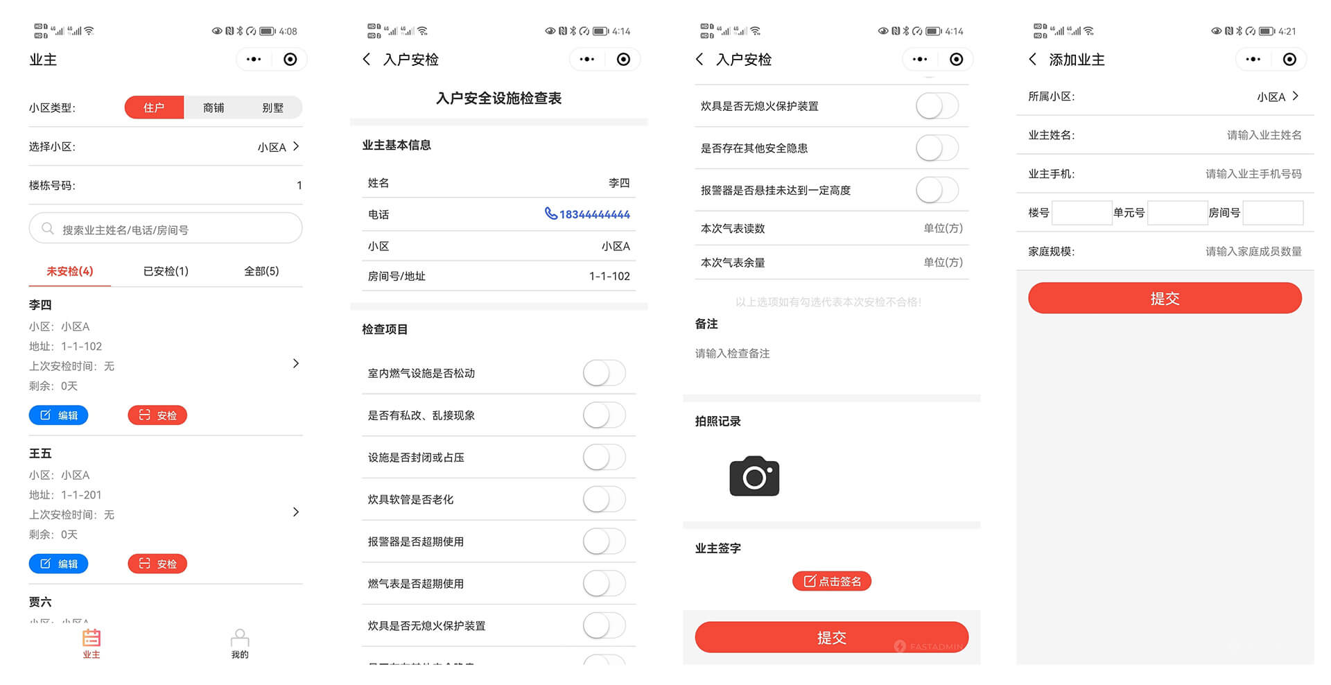 在業(yè)主管理方面,管理人員可以通過后臺方便地添加或批量導(dǎo)入業(yè)主信息,并能直觀地看到每個業(yè)主家中設(shè)備的安檢狀態(tài)和安檢記錄。這不僅便于及時跟進安檢工作,也使得業(yè)主能夠清晰地了解自己的安檢情況。