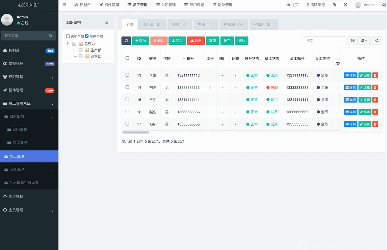 快捷操作員工狀態(tài):系統(tǒng)提供了快捷操作員工的入職、離職、轉正和調崗事件的功能。您可以通過簡單的操作,快速更新員工的狀態(tài),簡化管理流程。